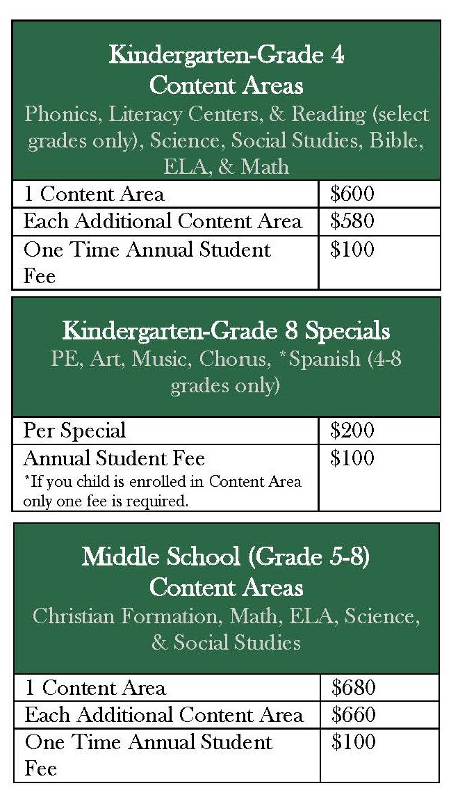 HTSC runs on an approximate 12-week trimester. Families have the option to participate in all three trimesters, or as few as one trimester/year. Tuition is based on per Content area and/or Special per trimester.